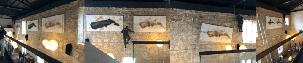 Este fue su bautismo de fuego en el entorno marino. Un duro viaje que le cautivo de una manera muy profunda. Fue consciente de percibir colores que no había apreciado hasta entonces,, la fluorescencia del plancton en la espuma de las olas y la estela del barco, el misterioso y errante canto de las ballenas en la noche oceánica. Estos aspectos que le impresionaron fuertemente como creador, le hicieron cambiar drásticamente su lenguaje creativo y su manera de trabajar, abandonando su estética conceptual y adentrándose en una obra expresionista rica en color. Recientemente, ya en 2016, la relectura de Moby Dick de Melville y el descubrimiento de algunos logbook de barcos balleneros del siglo XIX y sus bellos grafismos, argumentaron su necesidad de sumergirse en esta nueva colección a la que hoy les invita.