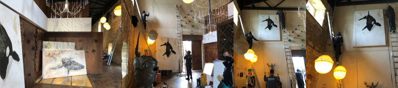 El escenario de la exposición es el mar, los cetáceos y el libro Moby Dick, planteada como una odisea donde van pasando los diferentes capítulos como una búsqueda de las formas, ritmos, cadencias y movimientos que nos invita a una relectura.