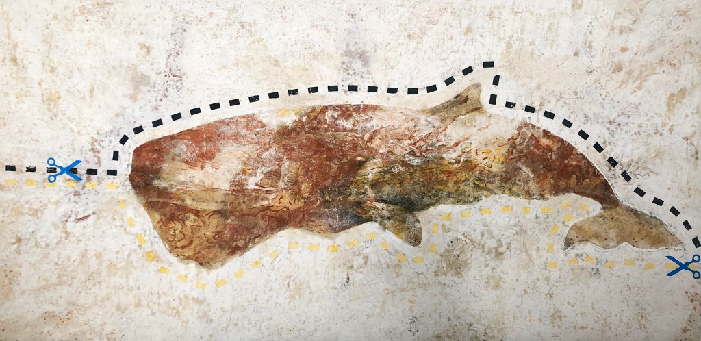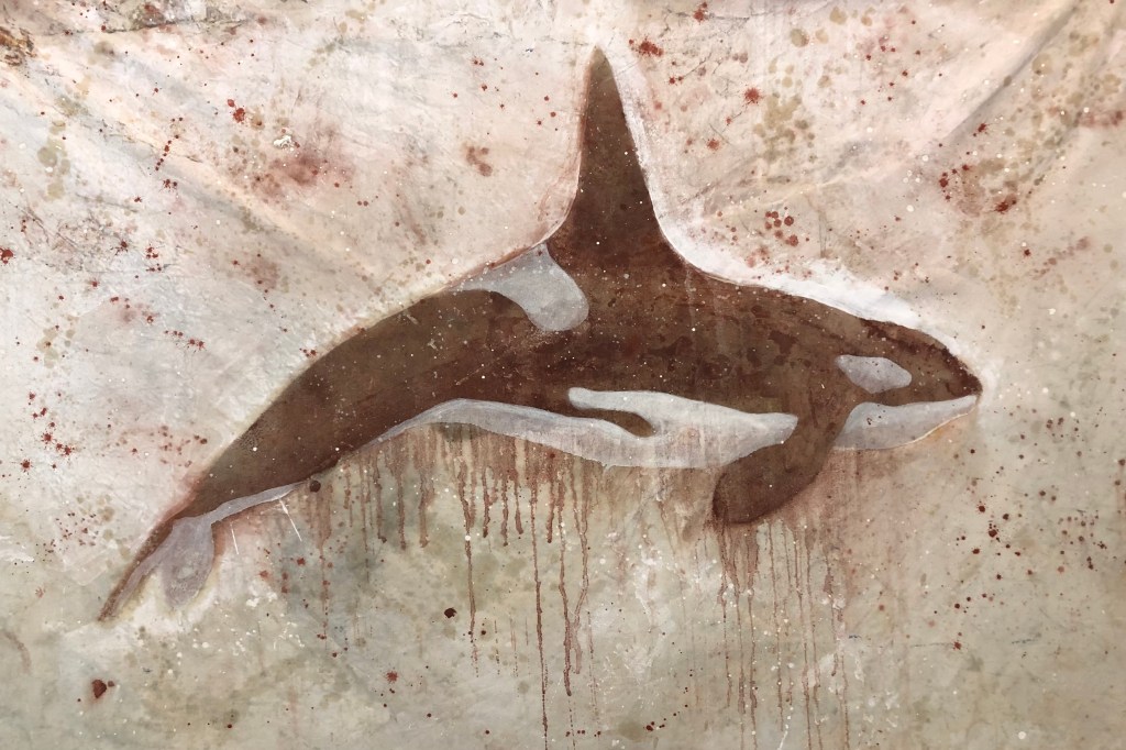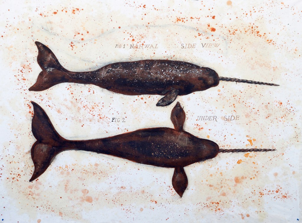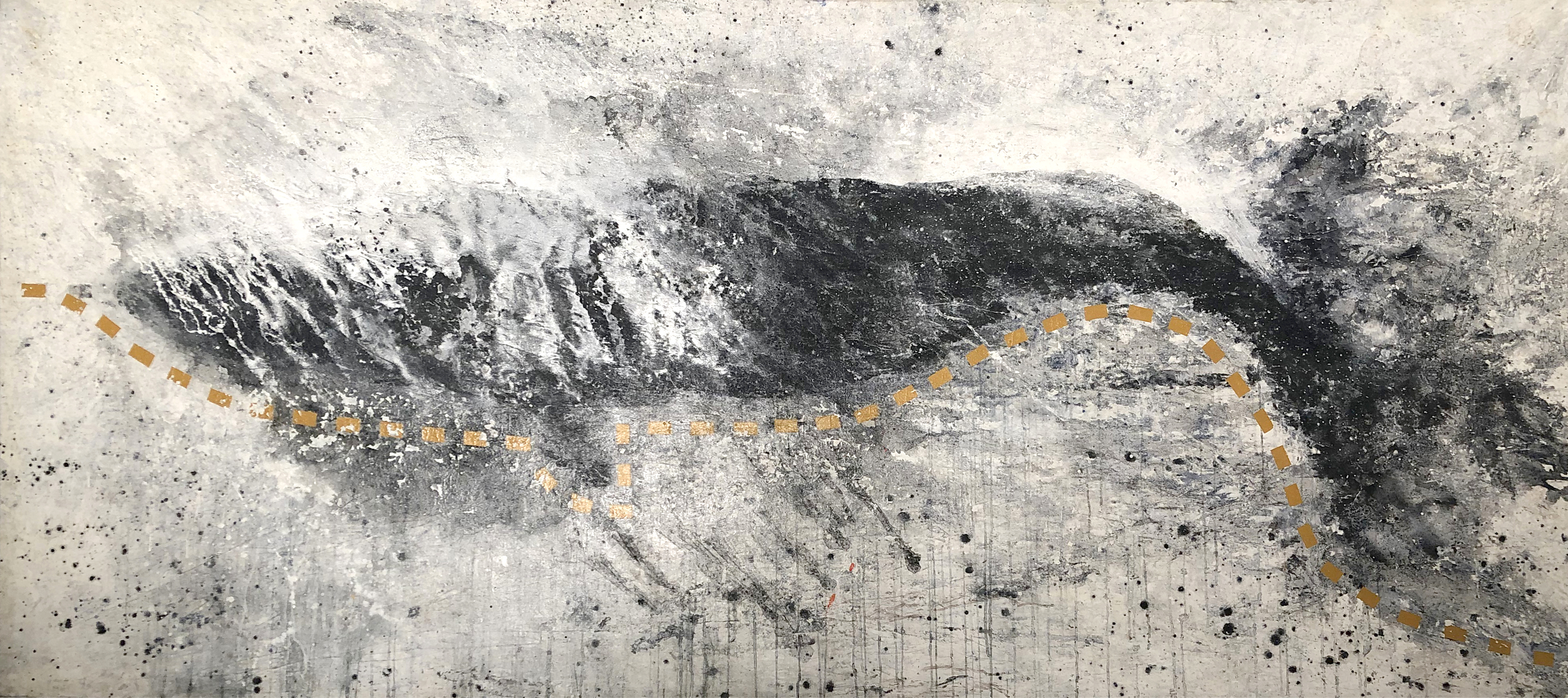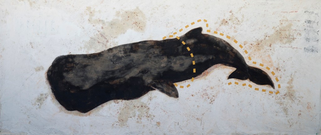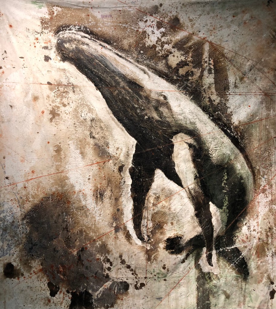 Recientemente, ya en 2016, la relectura de Moby Dick de Melville y el descubrimiento de algunos logbook de barcos balleneros del siglo XIX y sus bellos grafismos, argumentaron su necesidad de sumergirse en esta nueva colección a la que hoy les invita. El escenario de la exposición es el mar, los cetáceos y Moby Dick, planteada como una odisea donde van pasando los diferentes capítulos como una búsqueda de las formas, ritmos, cadencias y movimientos que nos cautivan como cantos de sirena