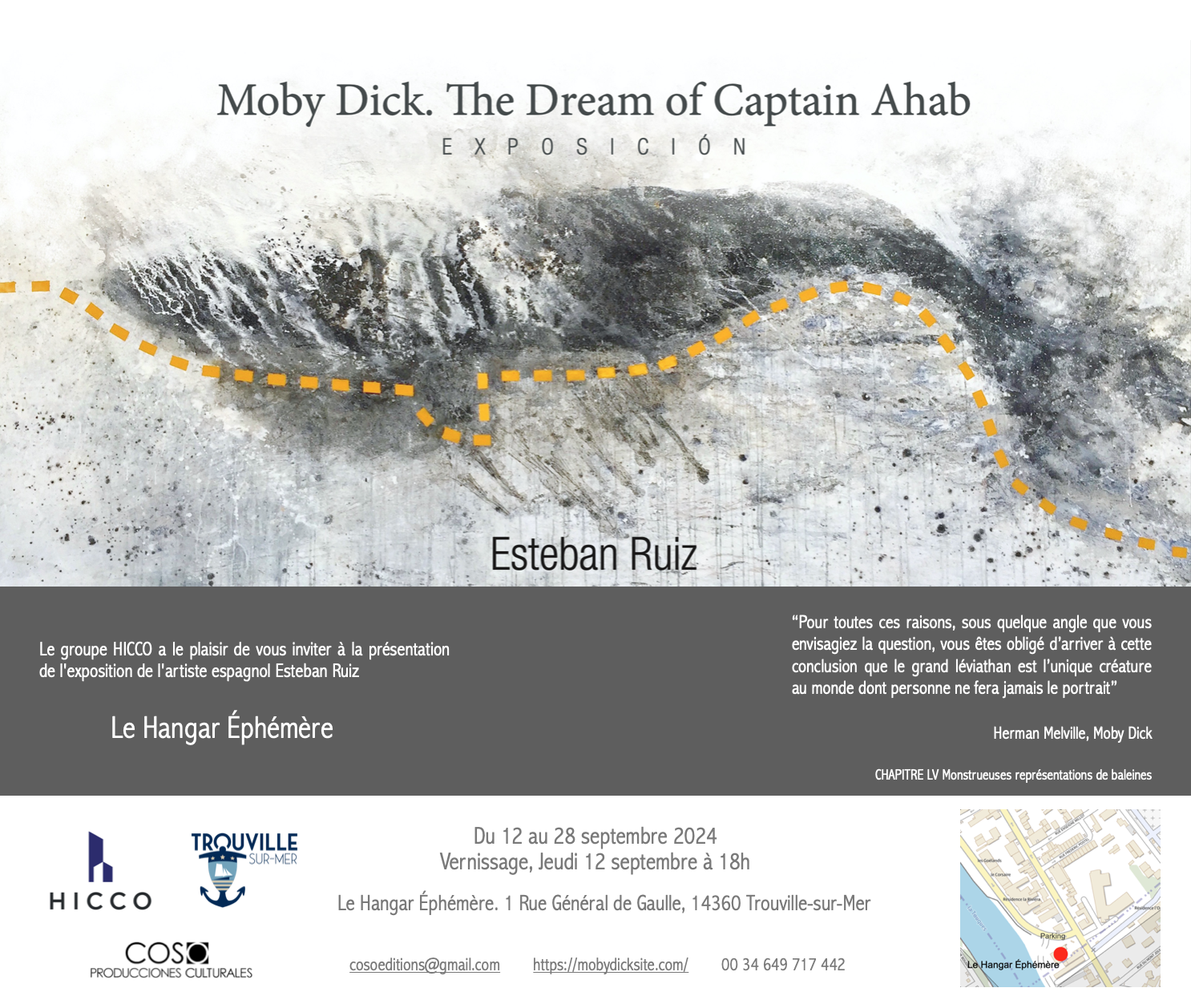 L’artiste espagnol Esteban Ruiz, a présenté la collection « MOBY DICK, Le Rêve du Capitaine Achab » a Le Hangar Éphémère du 12 au 28 septembre à Trouville sur Mer.